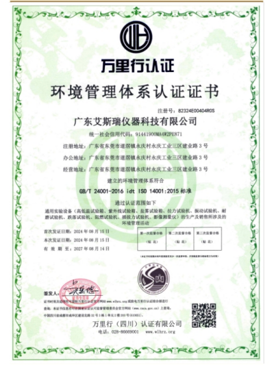 廣東艾斯瑞儀器科技有限公司 廣東艾斯瑞儀器科技有限公司在東莞道滘投產(chǎn),廠房面積38000平方,是一家擁有著多年試驗(yàn)機(jī)研發(fā)、設(shè)計(jì)、生產(chǎn)的廠家,經(jīng)驗(yàn)雄厚并與國內(nèi)外知名企業(yè)合作,產(chǎn)品遠(yuǎn)銷世界多個(gè)國家和地區(qū)。 產(chǎn)品符合標(biāo)準(zhǔn):ISO、AATCC、ASTM、DIN、EN、GB、BS、JIS、ANSI、UL、TAPPI、IEC、VDE….均可用,產(chǎn)品廣泛適用于:科研單位、質(zhì)檢機(jī)構(gòu)、大專院校以及電子電器、涂料、箱包、膠粘、手機(jī)、紡織、玩具、橡膠、塑料、金屬、電線電纜、制鞋、皮革、包裝、建材、石化、航空…等產(chǎn)業(yè),為材料開發(fā)、物性試驗(yàn)、教學(xué)研究、品質(zhì)管理、進(jìn)料檢驗(yàn)等必備。 艾斯瑞儀器將建立起遍布亞、美、歐三大洲的專業(yè)研發(fā)網(wǎng)絡(luò),建立健全創(chuàng)新機(jī)制及知識(shí)產(chǎn)權(quán)管理平臺(tái),為公司發(fā)展奠定基礎(chǔ),從而成為國內(nèi)企業(yè)中產(chǎn)品馳騁全球的先導(dǎo)者。 公司自成立以來堅(jiān)決以品質(zhì)為核心,精美外觀設(shè)計(jì)為中心,以及認(rèn)真務(wù)實(shí)的工作精神,更好服務(wù)于廣大客戶并贏得良好的口碑。我們將一如既往,堅(jiān)持以“誠信經(jīng)營”為本,“品質(zhì)至上”為主,服務(wù)至上為宗旨,用創(chuàng)新的思路和技術(shù)設(shè)計(jì)產(chǎn)品,保證優(yōu)良的品質(zhì),品質(zhì)管理、進(jìn)料檢驗(yàn)等必備。